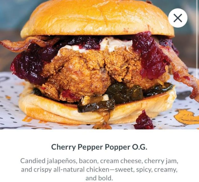 ![]() | I LOVE a restaurant that does a little monthly shake up! Tumble 22 has monthly specials and if one calls to me, I have no choice but to go! And they never disappoint because this sandwich was as fabulous as it looks! This sandwich was the winner (understandably so) of people creating their own sandwich creation. Honestly I have no idea what chicken sandwich I would create but I fear it would not live up to the Cherry Pepper Popper. |