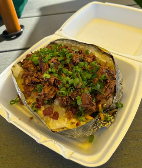Never have I ever ordered a loaded baked potato from a BBQ place before this moment and I’m starting to wonder why. The person before me received this beautiful creation and I was easily influenced.