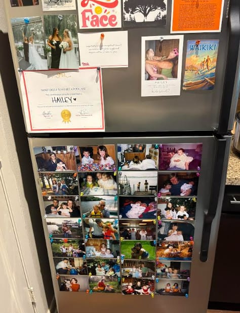 Your refrigerator is ugly (probably), decorate it. Make it feel homey! My top half features current photos, invitations, letters, and postcards. The bottom half is filled with childhood photos. I am obsessed with my fridge and I think more people should share that sentiment! If you want to be featured, send me something cute!