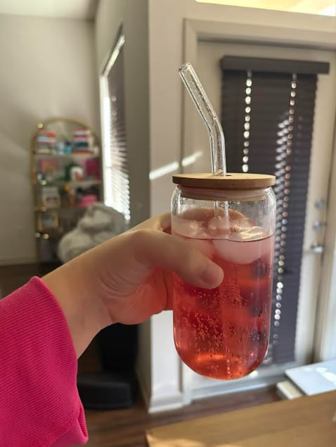 There is something about putting a beverage you love into a cute glass. My drink of choice is the Raspberry Rose Poppi. It just instantly made me feel like THAT GIRL because the drink looked cute. I was getting ready for my Galentine’s and sipping a cute bevvy!