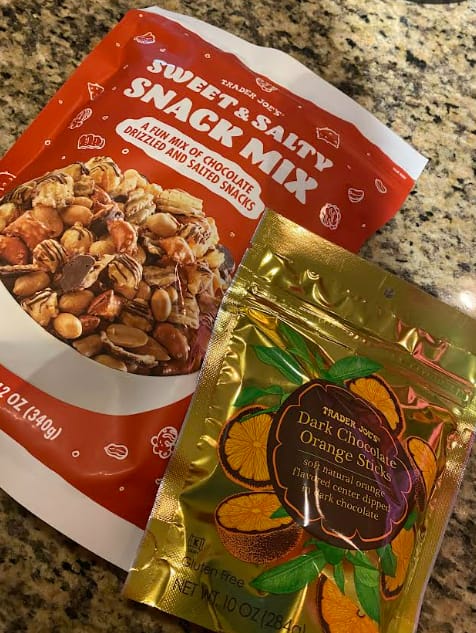 ![]() | Trader Joe’s snacks are often a win but do not always hit! The Dark Chocolate Orange Slices: a HIT. The Sweet & Salty Snack Mix… the vision was there but unfortunately it did not hit. I’m not sure if it was just my package but it was slightly stale. Not pictured and not a holiday item are the “Super Sour Scandinavian Swimmers.” I would die simply die for that Trader Joe’s treat. |