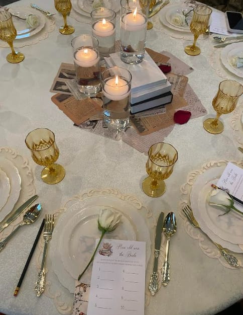 ![]() ![]() ![]() ![]() | I love a party! I love a theme! I love a themed party! The more dedication to the theme the better. It just makes an event even better. Don’t like a theme? Sorry you don’t like fun! I got to attend two themed events this week. A book themed bridal shower and a ‘27 dresses’ 27th birthday party. Oh I was gagged! They were both absolutely gorgeous parties. |